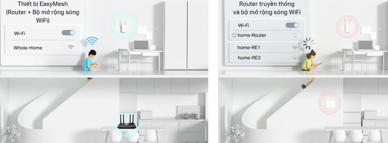 - Tương thích EasyMesh - Tạo mạng Mesh WiFi một cách linh hoạt bằng cách kết nối với bộ định tuyến tương thích với EasyMesh để phủ sóng toàn bộ ngôi nhà một cách liền mạch