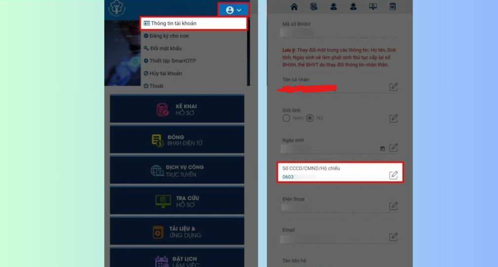 Để cập nhật số CCCD mới vào hệ thống Bảo hiểm xã hội (BHXH) mà không cần đến trực tiếp cơ quan BHXH, bạn có thể thực hiện ngay trên điện thoại theo các bước sau: