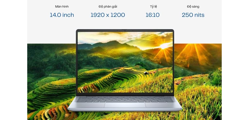 Laptop Dell Inspiron 5440 71034769 sở hữu màn hình 14 inch FHD+ sắc nét với tỷ lệ 16:10, mang đến không gian hiển thị rộng rãi và sắc nét, rất lý tưởng cho cả công việc và giải trí. Độ phân giải FHD+ (1920x1200) cho hình ảnh hiển thị chi tiết và sống động, nhờ đó bạn có thể dễ dàng làm việc với nhiều ứng dụng cùng lúc hoặc thưởng thức những bộ phim chất lượng cao.