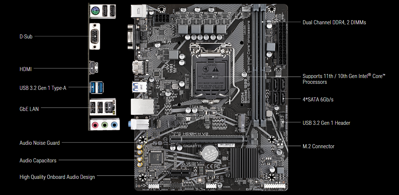 Bên cạnh đó, GIGABYTE H510M-H được trang bị chipset H510 và socket 1200 hỗ trợ nhiều dòng CPU hơn, sử dụng lâu bền hơn, đem lại hiệu năng cực khủng, tốc độ nhanh chóng bất ngờ.