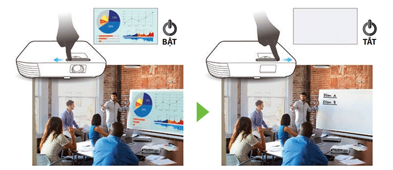Tính năng này có thể được sử dụng để tự động bật nguồn máy chiếu khi máy được kết nối bằng cáp với thiết bị như PC, qua đó tiết kiệm thời gian thiết lập. Chỉ cần rút cáp nguồn để tắt máy chiếu sau khi sử dụng và tăng tốc độ dọn dẹp sau các cuộc họp và tiết học.