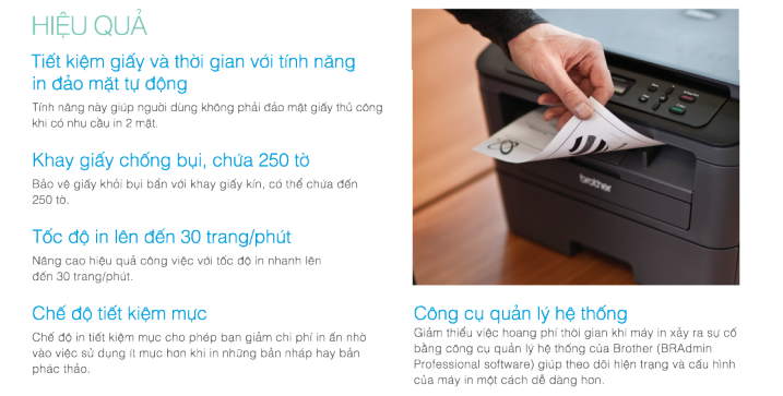 Với độ phân giải 2400 x 600 dpi, máy in Laser Brother MFC-L2701DW cho khả năng in sắc nét, rõ ràng, chất lượng tốt, giúp các bản in trở nên chuyên nghiệp khi gửi cho khách hàng hay cấp trên, làm tăng hiệu quả công việc văn phòng.