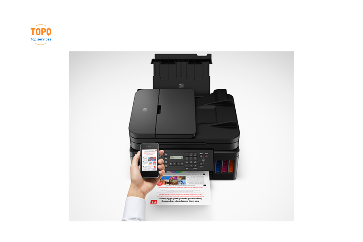 Máy in đa chức năng tiếp mực liên tục công suất lớn với kết nối không dây, khay ADF quét tự động và chức năng Fax dành cho doanh nghiệp.
