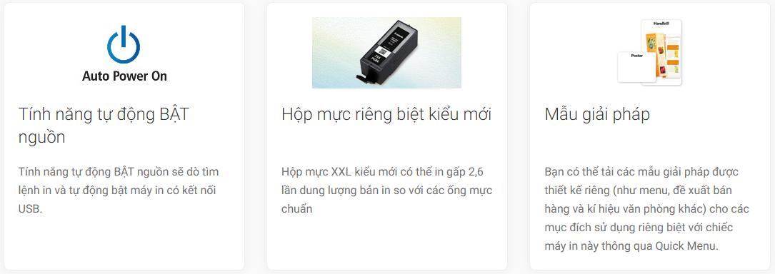 Máy in phun màu Canon Pixma IX6770 tích hợp tính năng tự động BẬT nguồn sẽ dò tìm lệnh in và tự động bật máy in có kết nối USB. Nhờ đó, bạn không phải tốn quá nhiều thời gian khởi động máy in.