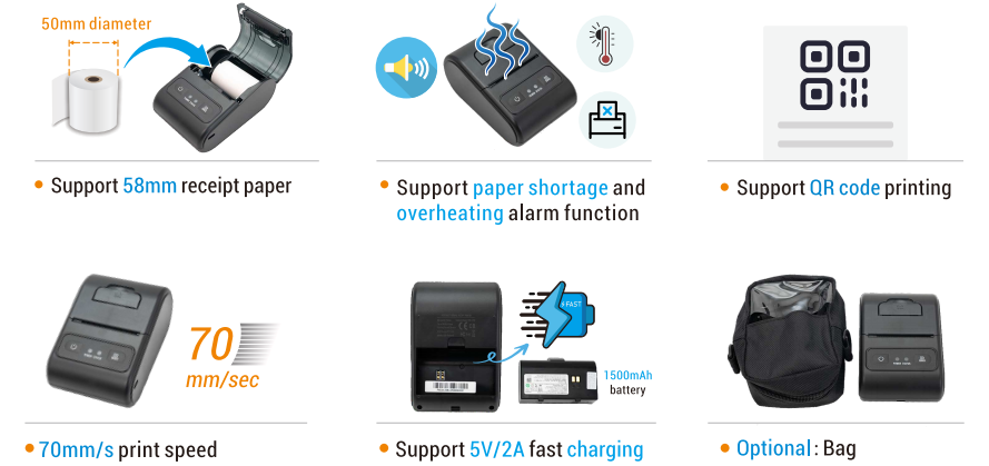 Máy in hóa đơn di động Xprinter XP-P504A (USB/Bluetooth)
