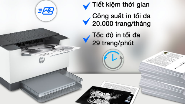Tốc độ in nhanh lên đến 29 trang/phút, chỉ mất khoảng 7 giây cho trang in đầu tiên. Công suất in tối đa của máy khoảng 20.000 trang/tháng, đáp ứng tốt nhu cầu in ấn cơ bản tại các văn phòng nhỏ, cá nhân, gia đình.