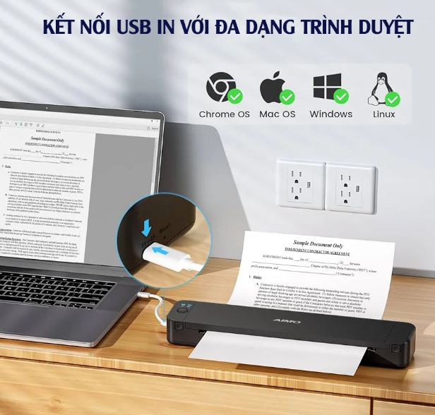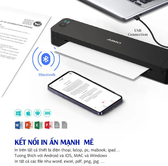 Máy in A4 di động nhỏ gọn in bằng giấy A4 thông thường P832 của AIMO. Mang máy in đi khắp mọi nơi, in ấn dễ dàng khi có nhu cầu in. Máy in di động khổ A4 P832 là giải pháp lý tưởng để in tài liệu, hình ảnh, hợp đồng, v.v., và là một trợ lý tuyệt vời cho học tập và công việc văn phòng. Máy có thể Bluetooth tương thích với Android và iOS; kết nối USB giúp tương thích với MAC và Windows một cách dễ dàng