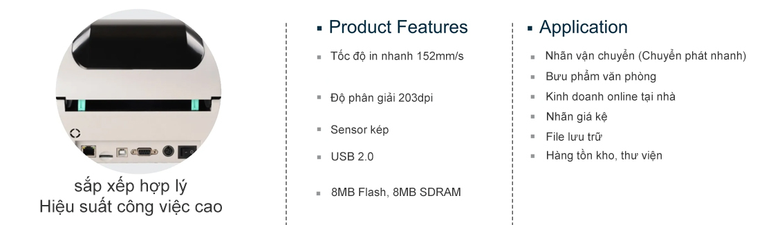 - Độ phân giải: 8 dots/mm(203 DPI)