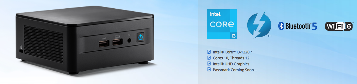 Asus NUC 12 Pro Tall NUC12WSHI3 được trang bị bộ vi xử lý Intel Core i3-1220P thuộc dòng Alder Lake, mang đến hiệu năng mạnh mẽ cho các tác vụ đa nhiệm. CPU này có tổng cộng 10 lõi và 12 luồng, với tần số turbo tối đa lên đến 4.40 GHz, giúp xử lý tốt các công việc văn phòng, đa phương tiện, và các tác vụ phức tạp hơn như chỉnh sửa ảnh hay video. Cùng với bộ nhớ đệm 12MB, chiếc Mini PC này đảm bảo khả năng xử lý mượt mà ngay cả khi chạy nhiều ứng dụng đồng thời.