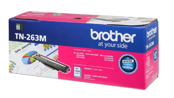 - Mực in Brother TN 263M là sản phẩm chất lượng cao của hãng Brother, thương hiệu công nghệ nổi tiếng thế giới trong lĩnh vực in ấn.