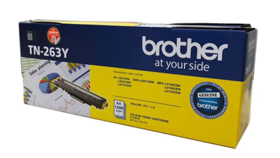 Mực in TN 263Y cho năng suất in 1.400 trang với độ phủ 5% trang theo tiêu chuẩn in của hãng.