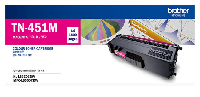 - Mực in Brother TN 451M là màu đỏ truyền thống, phù hợp với các sản phẩm in và mục đích in khác nhau của người sử dụng.